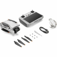 DJI Mini 3 (RC). Número de rotores: 4 rotores. Megapixeles: 48 MP, Máxima resolución de video: 3840 x 2160 Pixeles. Velocidad máxima: 16 m/s, Distancia de funcionamiento máximo: 18000 m. Funciones de control del movimiento: Descendente. Tecnología de batería: Ión de litio, Capacidad de batería: 2453 mAh. Tarjetas de memoria compatibles: MicroSD (TransFlash). GLONASS, Wifi, Wi-Fi estándares: Wi-Fi 5 (802.11ac). Color del producto: Gris, Blanco
